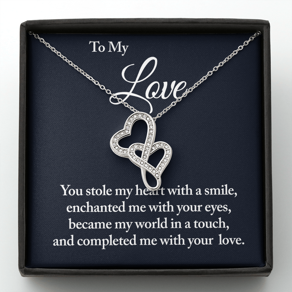 Imagine the joy on your loved one's face when she sees this gorgeous Double Hearts Necklace! The 2 joined hearts represent an eternal bond between two souls.