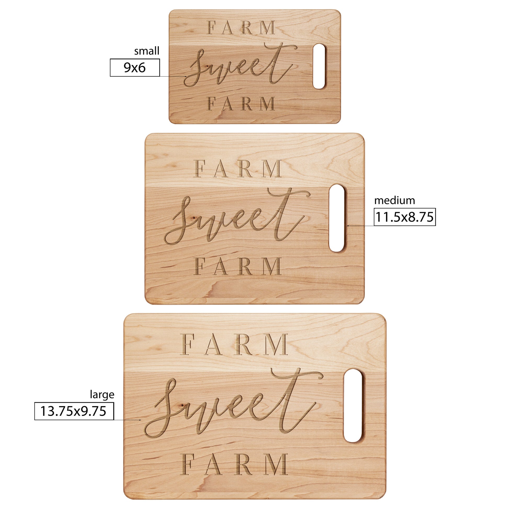 Our maple cutting boards are absolutely stunning. Hand-crafted from solid maple and laser engraved, these cutting boards will be the show-piece of your kitchen. They are also perfect gifts for any time of the year. Maple is a fantastic wood for cutting boards. It is very durable, and will last for years to come. One side of the cutting board is personalized for display and the other side is used for food preparation. Available in three sizes. Made in the USA