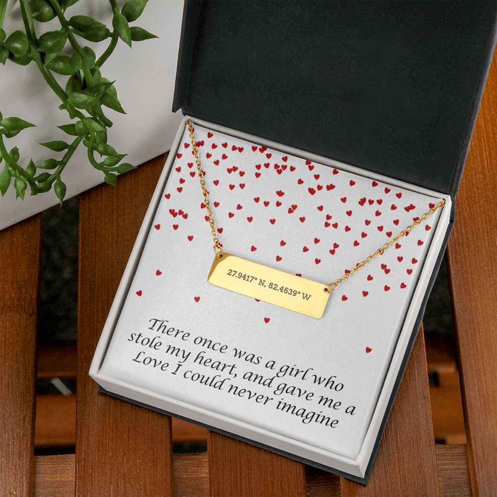 Celebrate and remember a special location with a custom piece of handcrafted jewelry. This Coordinate Horizontal Bar Necklace can be personalized with any specific location. Simply enter the address of your choice, and it will be converted into longitude and latitude coordinates. The perfect gift for graduations, weddings, engagements, and more.